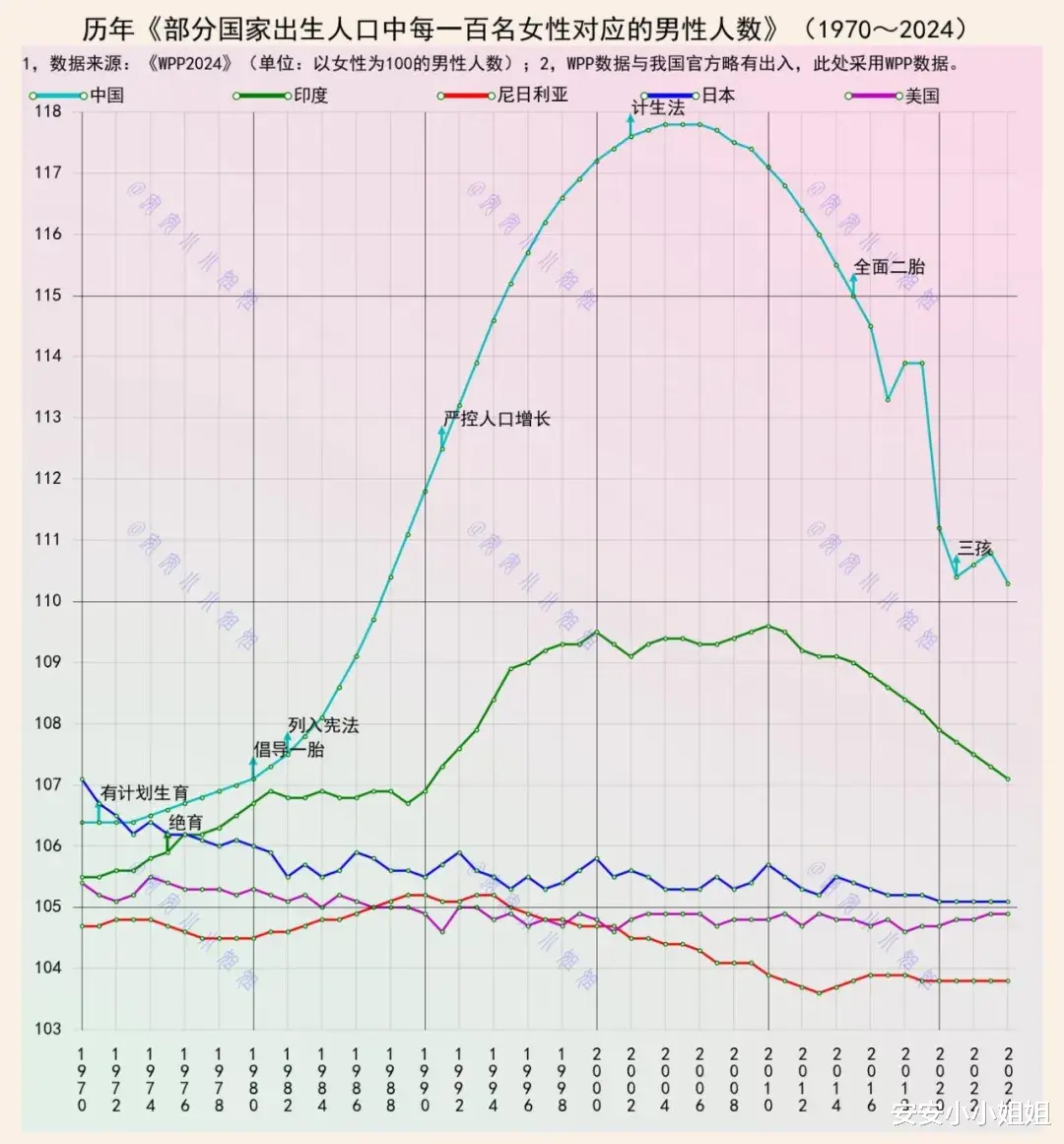 图表清晰地标注了“计生法”等节点,这些政策与传统的男孩偏好交织,悄然改变了人口的底色。