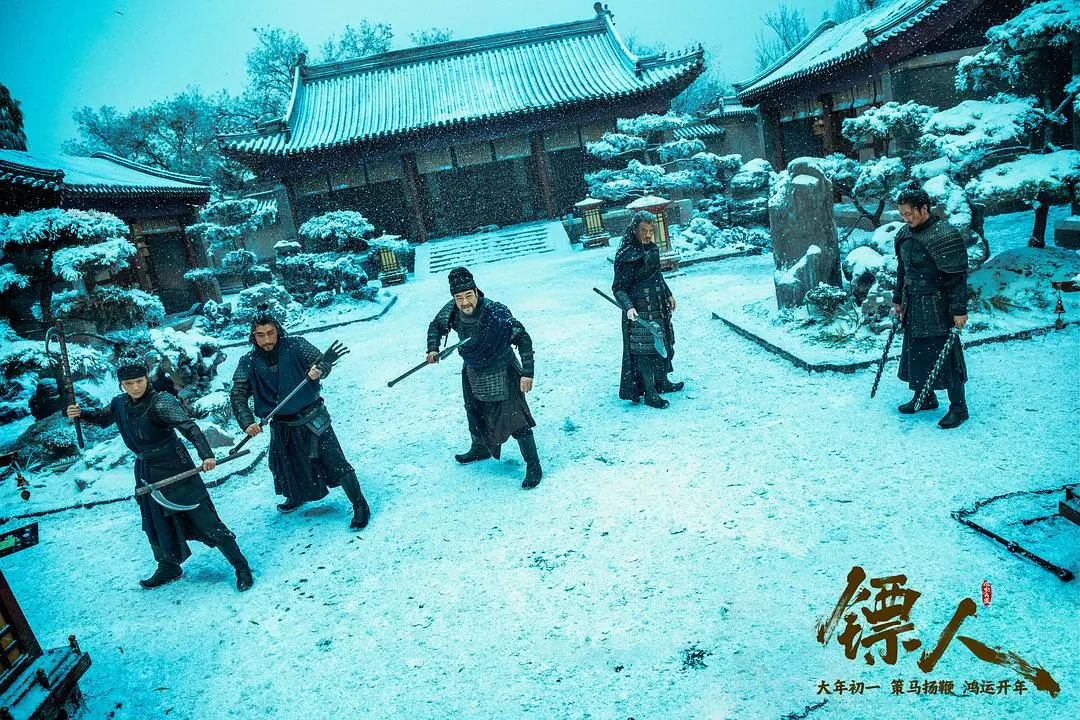 2026年的《镖人:风起大漠》,是武侠动作片再次冲击春节档的尝试,同时,也是漫画改编影片的再次创新之作。2025年《射雕英雄传》的6.89亿已经是武侠动作片票房最高纪录,《镖人》能否超越该片创造武侠类型片的更好成绩,值得拭目以待。袁和平李连杰惠英红吴京张晋谢霆锋 新老动作巨星同台能让吴京、李连杰、惠英红、谢霆锋、张晋、于荣光等一大批动作片演员齐聚一堂的,只有袁和平导演了。