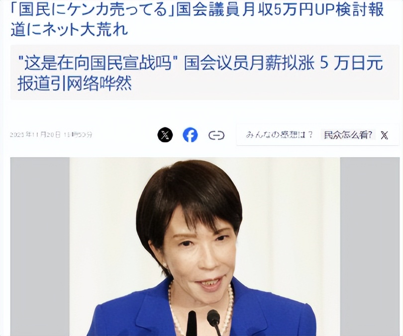 事情起因是,日本自民党近期提出了一项拟将国会议员月薪,上调5万日元(从129.4万日元涨至134.4万日元)的法案,该消息在日本国内引发了强烈争议。在物价高涨、国民生活压力剧增的背景下,这一“常规操作”被日媒批评为“把国民当傻子耍”。该法案消息传出后,“议员涨薪”迅速登上日本社交媒体热搜,网友的批评如潮水般涌来,报道称全网几乎找不到支持的声音。而且给国会议员涨5万月薪这条新闻,跟只给发2万日元的一次性儿童补贴这两条新闻放一起,显得更讽刺了。