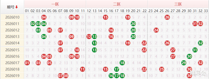 双色球分析区间比:上期区间比2:3:1,上期一区微升,二区保持高位,三区下跌,本期推荐区间比2:2:2。