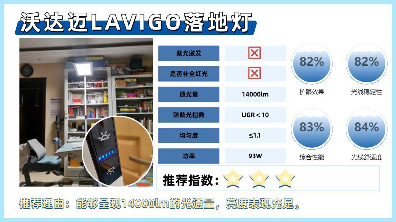 护眼大路灯第四名:沃达迈LAVIGO落地灯;能够呈现14000lm的光通量,亮度表现充足。