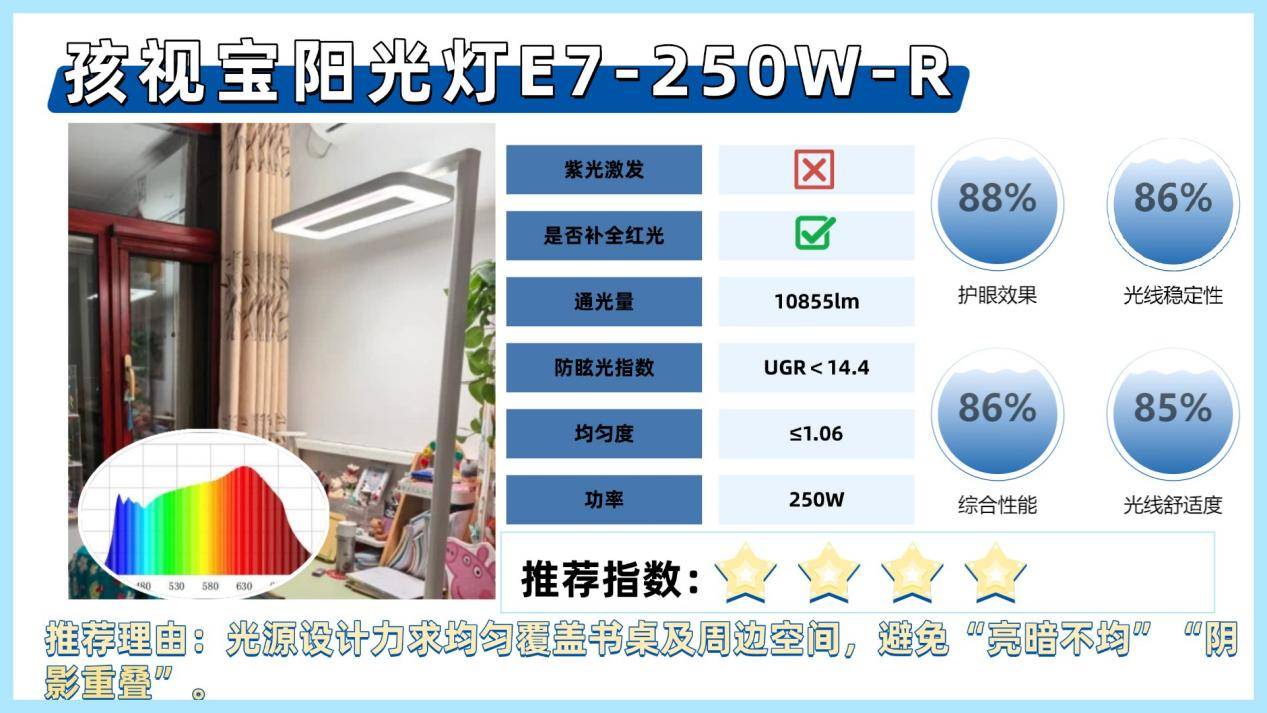 护眼大路灯第三名:孩视宝E7-250W-R;支持上下发光面单双开的护眼大路灯,适用于不同场景。