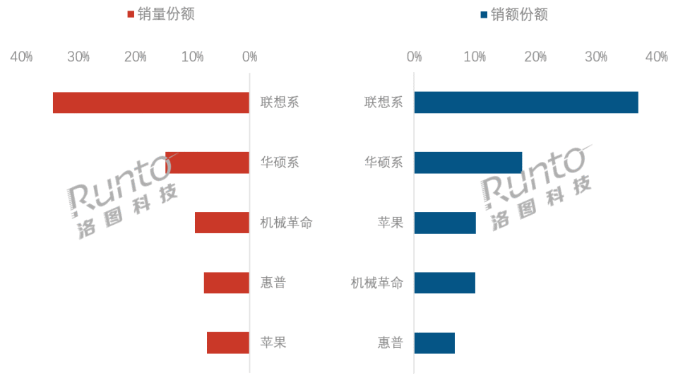TOP10品牌份额破九成;联想以3成份额列量额第一