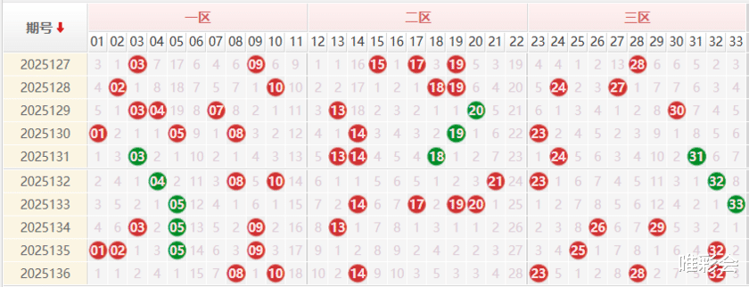 红球龙头热点:01 07 红球凤尾热点:32 33