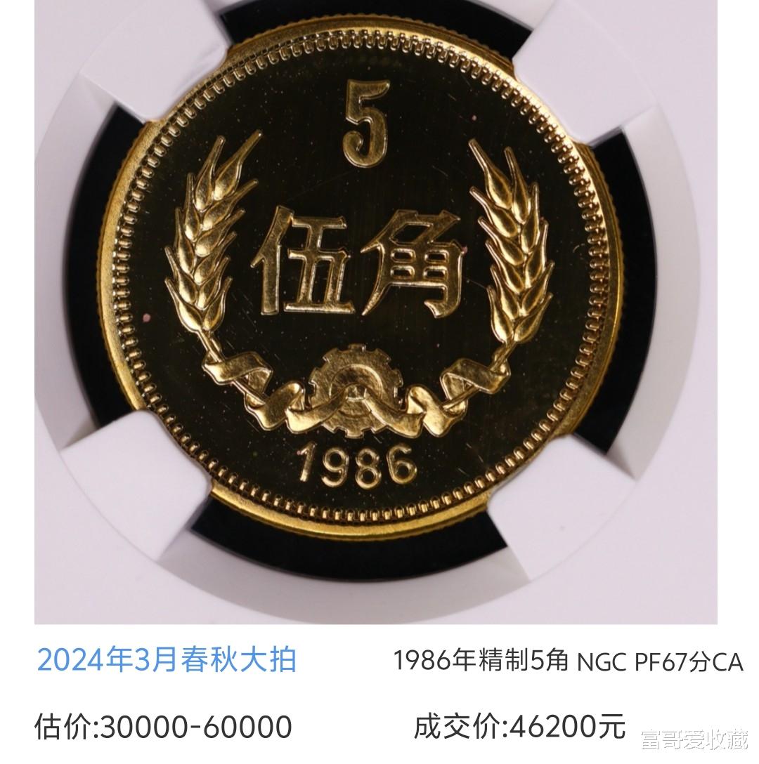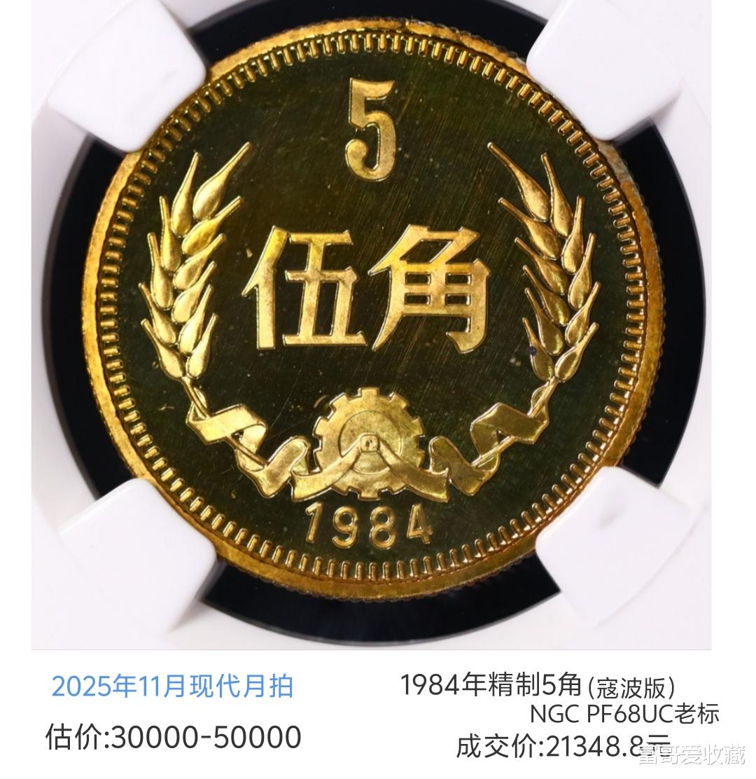 而上面这枚1984年的精制5角(寇波版),它的估价也达到了5万!