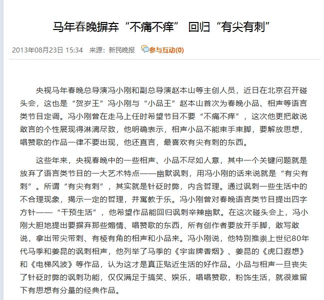之前说春晚一年不如一年,有人会说是因为娱乐活动多了,之前是没得挑只能看电视,现在时代不同了。但这种说法,只能解释收视率降低的原因,但是我们发现,春晚的“讽刺类”的作品,也很少见到了。