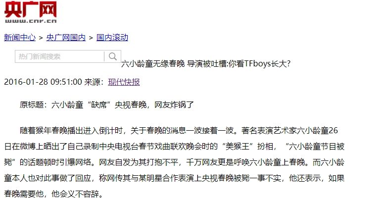 到了2016年,亿万网友刷屏#请六小龄童上春晚#,总导演吕逸涛的微博被200万条评论淹没,可春晚剧组强硬表态:“不会被网络话题绑架”,最终六小龄童全程缺席。