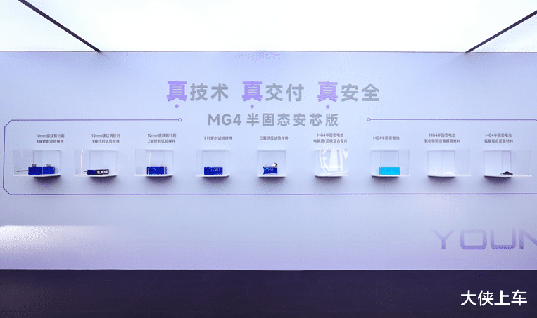同时,半固态电池的安全性也更为出色,比如MG品牌就在广州车展现场展示了全新MG4半固态安芯版的电池安全性表现,通过对搭载的半固态电池进行了行业最严苛的安全测试,通过螺纹钢穿刺、三向极限挤压、盐水浸泡、极寒冰冻、底部球击以及高温火烧等极端工况的终极检验后,电池包和电芯均均未出现热失控、起火或爆炸等现象,这也展示出半固态电池在极端情况下的可靠性。
