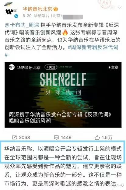 《反深代词》在发行当日即达到2500万销售额,发行首周销售额突破3000万,此后随着周深的第三次个人巡回演唱会的进程,整张专辑逐渐解锁,这也是周深首创的专辑解锁方式,这一发行方式保持了《反深代词》的热度,形成了极佳的长尾效应。9月29日,《反深代词》全专所有歌曲解锁,同时也是周深的生日,当日专辑销量又迎来了一个小高峰,单日销售额近300万。截至12月,《反深代词》已经发行了7个多月,却仍能连续数周保持日销售额10万以上的佳绩。《反深代词》发行后,周深的歌迷非常喜欢,也更为期待他的第三张个人专辑。华语乐坛需要周深这样深耕音乐艺术的音乐人,相信他会带领华语乐坛走向更宽广的远方。