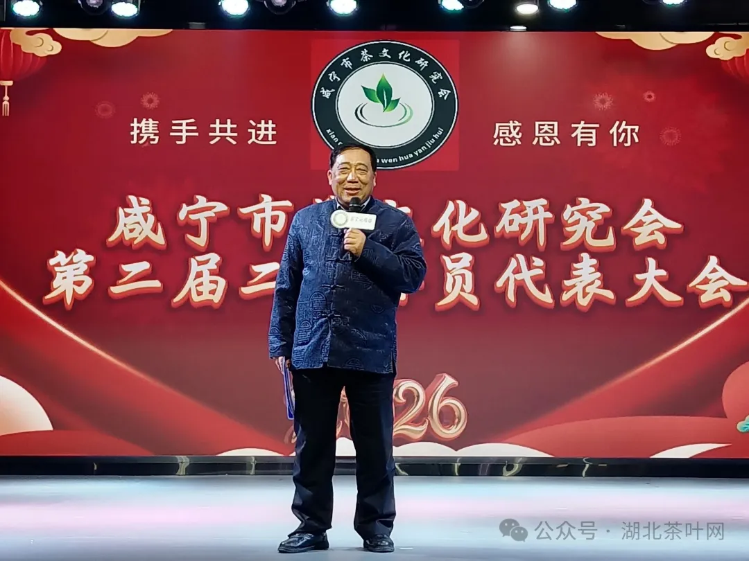 (湖北茶叶网消息 通讯员 李寅秋)2026年元月18日,咸宁市茶文化研究会在咸宁市举办第二届二次会员代表大会暨年会,并举行了《中国茶全书·湖北咸宁卷》授牌仪式,现场氛围喜庆热烈,充满文化韵味。活动全面总结了2025年工作成果,表彰了先进,标志着咸宁茶文化事业迈上新台阶。