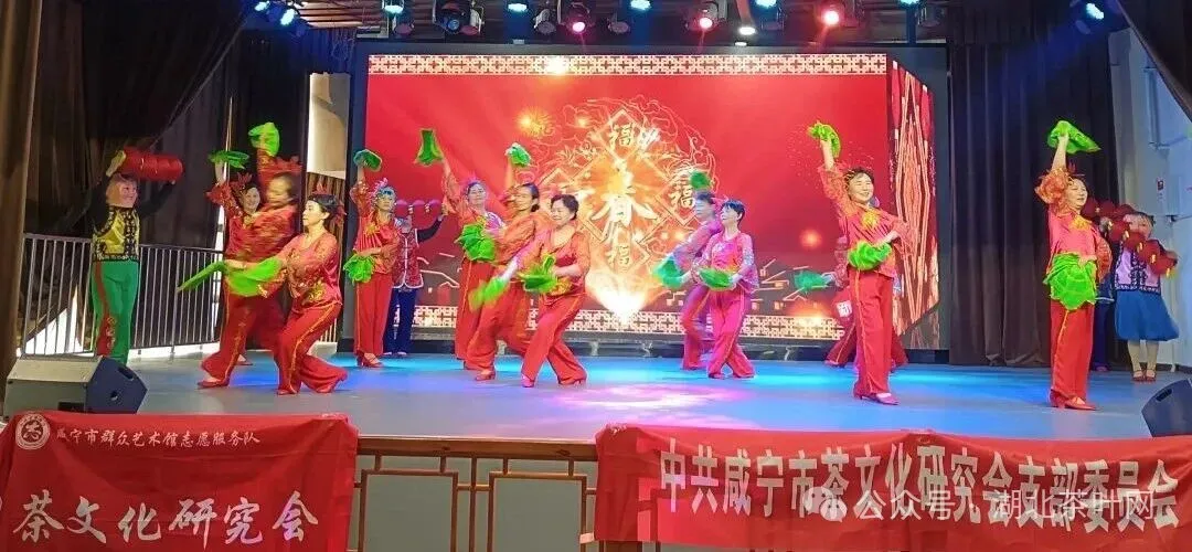 2026年1月18日下午,咸宁市文化中心内锣鼓喧天、灯笼摇曳。一段火红的手绢舞拉开活动序幕,浓浓的年味与茶香交织,烘托出欢天喜地的团圆氛围。活动以歌舞传递新春祝福,寄托对岁岁平安、产业兴旺的美好期盼。