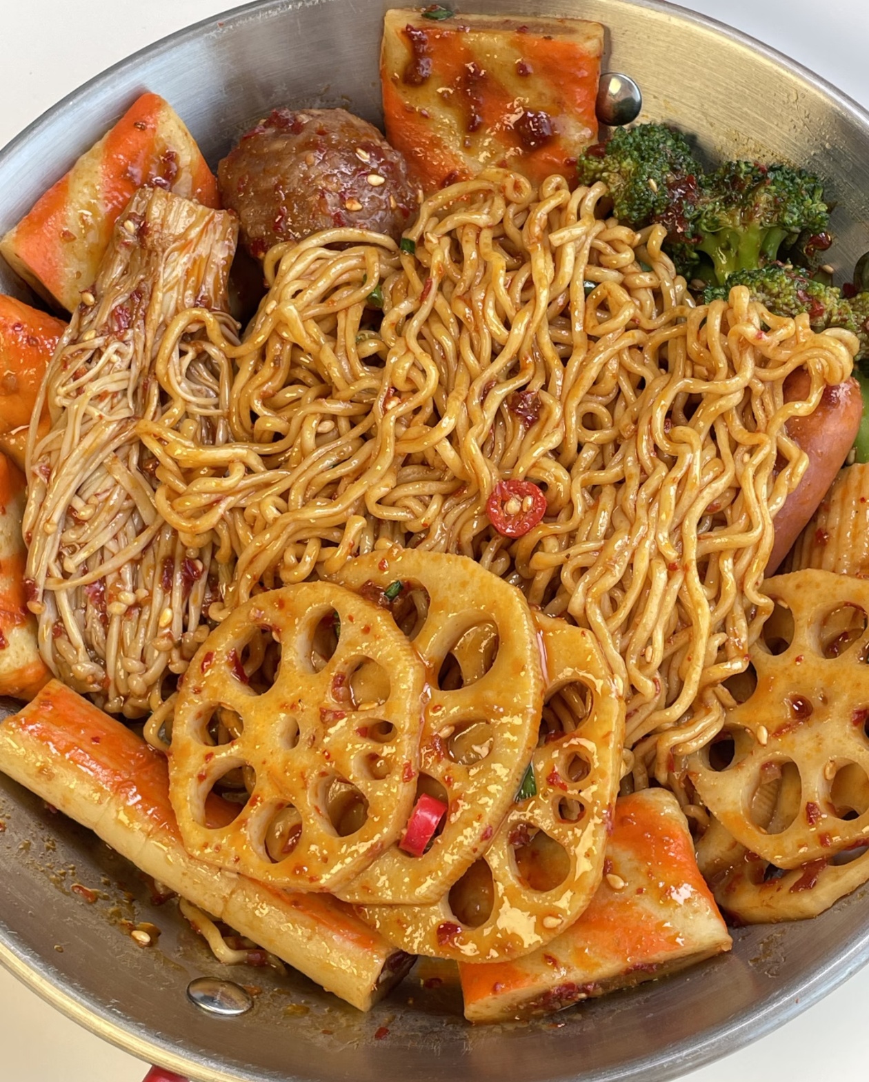 端上桌的那一刻,我家猫都闻着味儿跑过来了。夹起一筷子,藕片脆爽,西兰花清甜,金针菇吸饱了汤汁,Q弹的蟹棒和牛肉丸在嘴里爆汁,就连最普通的方便面都变得无比美味。麻、辣、鲜、香,所有的味道在嘴里完美融合,一口下去,所有的疲惫和不开心都被治愈了。