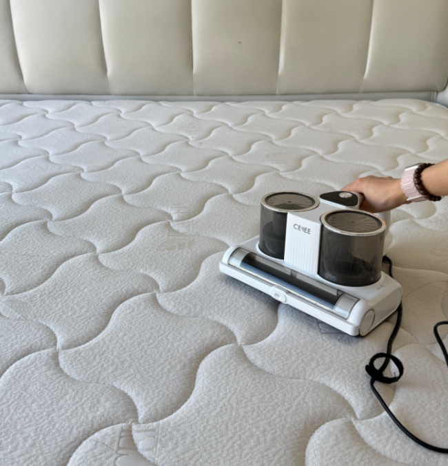 同时,希亦RM1除螨仪还配备了65°C恒温热风功能,不仅烘干床品,还能抑制螨虫滋生,尤其适合南方潮湿环境或家里有孩子、宠物的家庭。AI尘螨感应系统可根据床品脏污情况智能调节功率,绿光显尘灯让清洁过程直观可视,22cm宽吸口让大床几分钟就能搞定,省力又高效。可视双杯设计+7重HEPA强效过滤系统确保灰尘、螨虫、细菌全被捕捉,杜绝二次污染,这也是行业里很多低端机型无法做到的。
