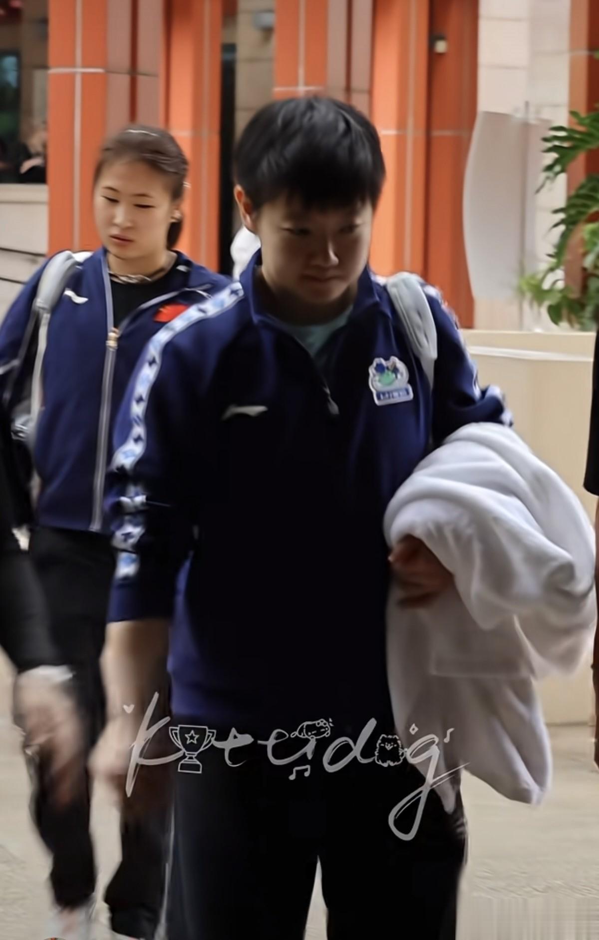 这次来新加坡比赛,酒店的安保工作很好,运动员在酒店这一段路,都有工作人员带着。新的一年,王楚钦这次的发型很男大,今天上午王皓和王楚钦、牛冠凯一起去上训,看到皓哥也穿上七分裤了,邱贻可也穿着七分裤,教练组估计发了这裤子,大家都穿着。