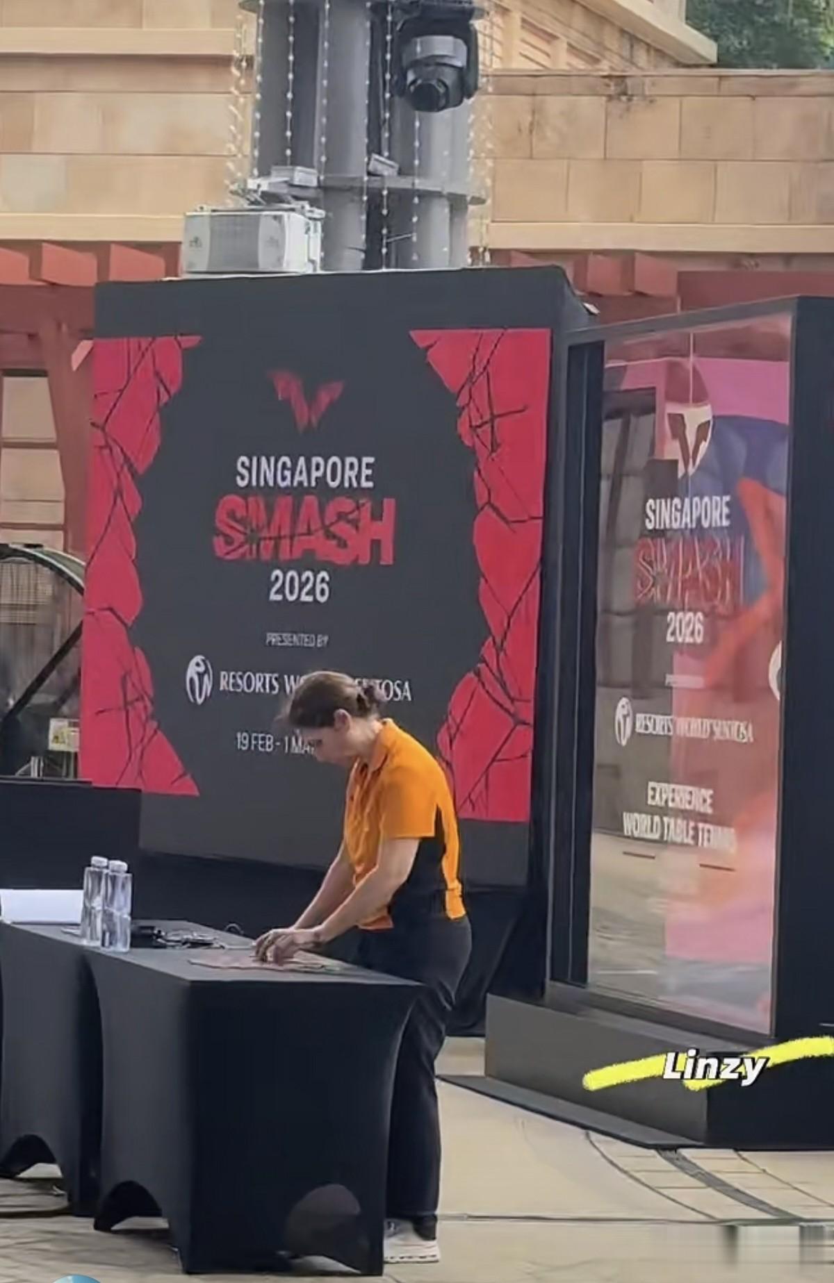 还是新加坡比较好,这是抽签的地方,看到有博主已经过去了,现场布置的很好看,今天抽签的时间是17:30,还有一个小时抽签,国乒孙颖莎、林诗栋将会出席抽签仪式。