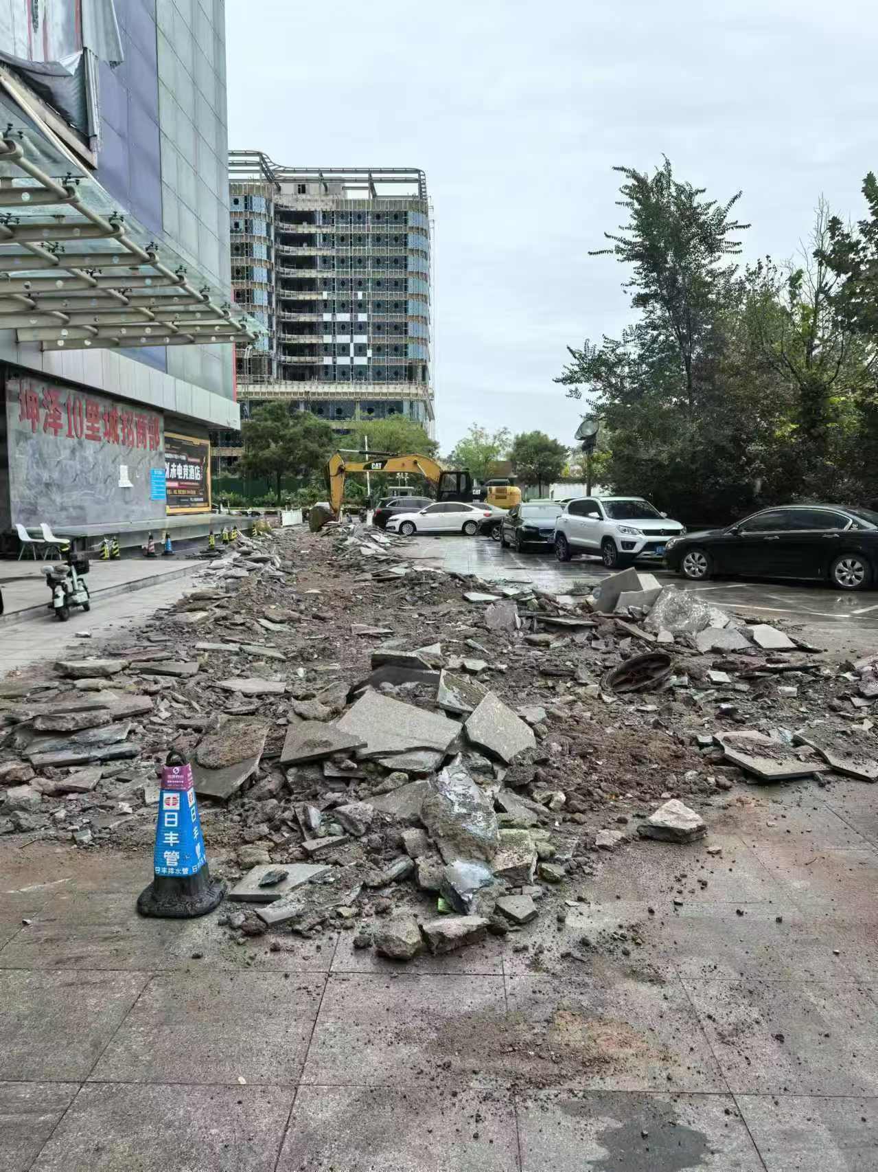 但楼前广场被挖得砖石瓦砾遍地,给入驻企业员工进出办公带来不便,纷纷转到其他场所,牵连停车位大片空闲损失惨重。