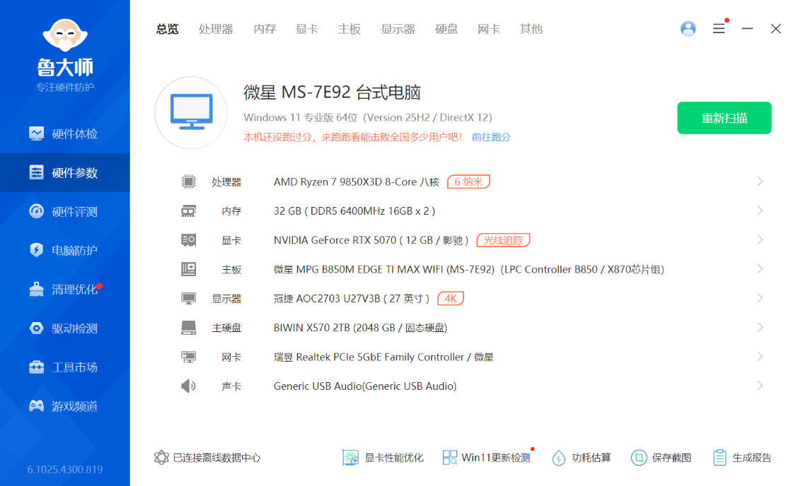 完整平台配置:AMD R7 9850X3D处理器、微星MPG B850M EDGE TI MAX WIFI、影驰RTX 5070 星曜LUNA OC显卡、宏碁掠夺者Hera影锋D5-6400MT/s C30冰戟银16G*2内存、佰维X570 2T M.2固态硬盘、九州风神冰立方AK620晴雪G2白色第二代风冷散热器、九州风神CH260 WOOD机箱、九州风神黄金统治者PQ850G WH全模组电源、九州风神FD12V2白色无光风扇*3+闪鳞120mm白色无光风扇*3...按时下JD价格计算,大抵是1.7W还不太够。仅供参考,不做任何购买建议了哈。
