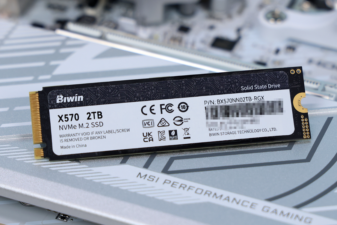 佰维X570 PCIe5.0 2T M.2固态硬盘。硬盘最大顺序读写速度可达14500/11000 MB/s,随机读写速度可达2000K/1400K IOPS。硬盘内置的智能温控芯片和电源管理系统,支持5年/1200TBW(2T版本)的保固政策。