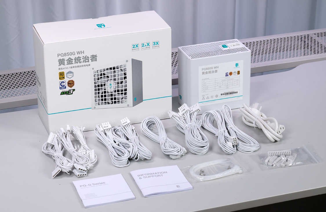九州风神黄金统治者PQ850G WH金牌全模组电源,搭配白色压纹模组线,柔软易理线,颜值也更耐看。