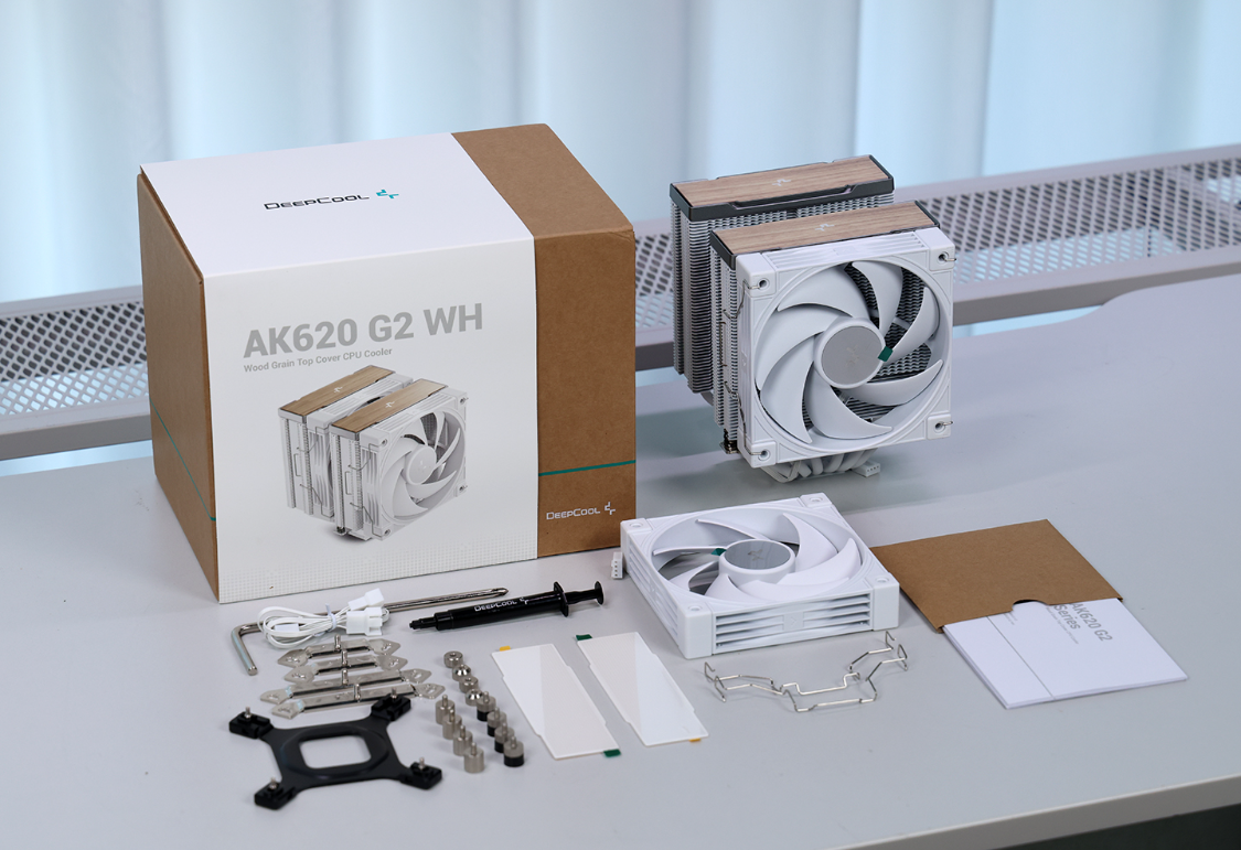 九州风神冰立方AK620晴雪G2白色第二代风冷散热器,精致木纹顶盖,完美融合自然优雅与现代性能,跟今天的机箱风格也更搭。同时,附赠的白色矩阵风格贴纸,让玩家可以自由选择顶置专属外观。扣具方面,配备的是支持主流Intel(LGA1851/1700/1200/115X)和AMD(AM5 / AM4)平台的易安装金属扣具。