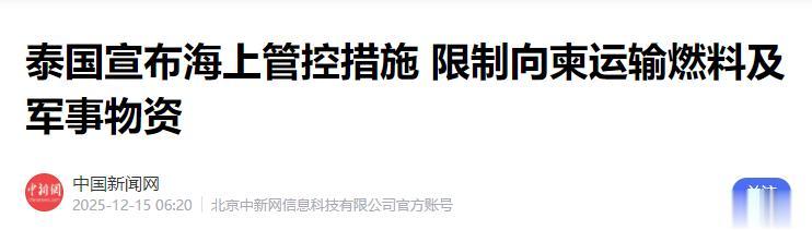 物流一断,资金一停,军队再多也只能原地消耗,真正致命的,是随后到来的“封海”,12月14日,泰国发布命令,禁止泰国籍船只向相关海域运输石油和物资。