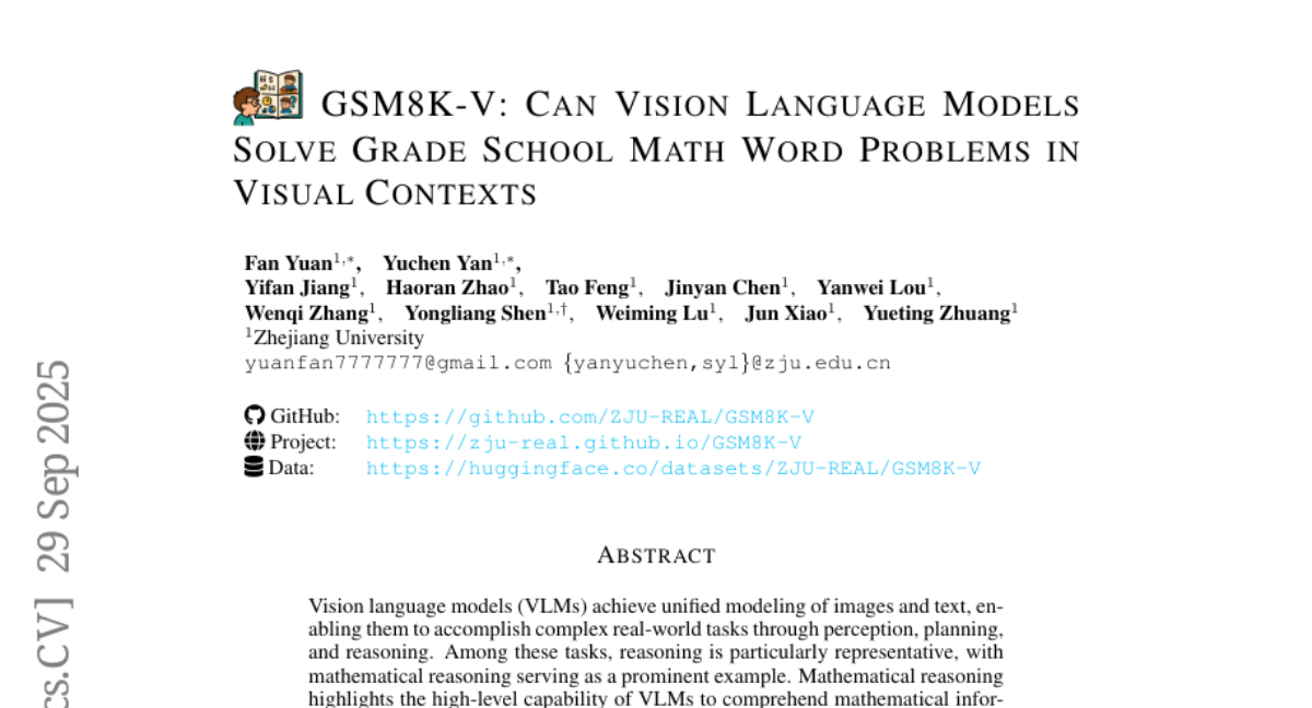这项研究最终告诉我们,人工智能的发展道路比我们想象的更加复杂和充满挑战。每当我们以为AI在某个领域已经接近人类水平时,总会有新的测试揭示出意想不到的差距。但这种挑战恰恰是推动技术进步的动力。正如浙江大学研究团队通过GSM8K-V所做的工作,真正的科学进步往往来自于那些敢于质疑现状、挖掘深层问题的研究。对于任何想要深入了解这项开创性研究的读者,都可以通过论文编号2509.25160v1在arXiv平台上查找完整的技术细节和实验数据。