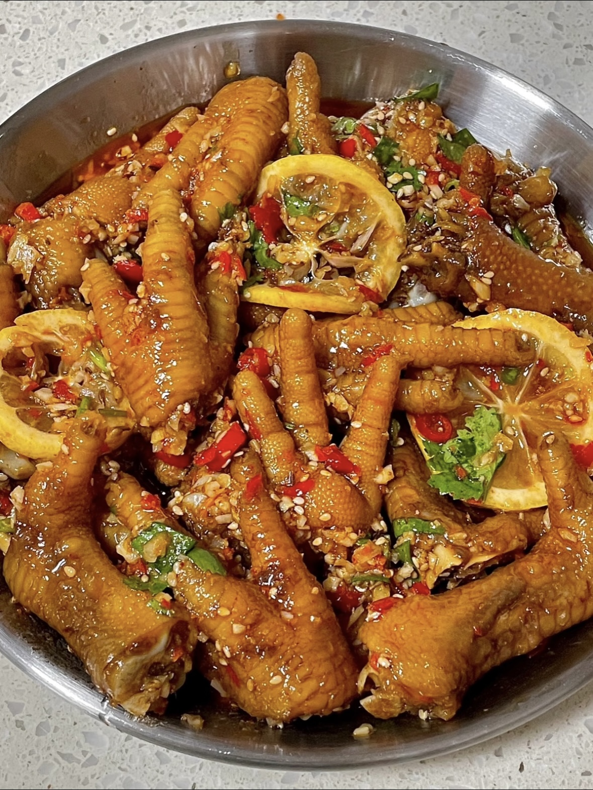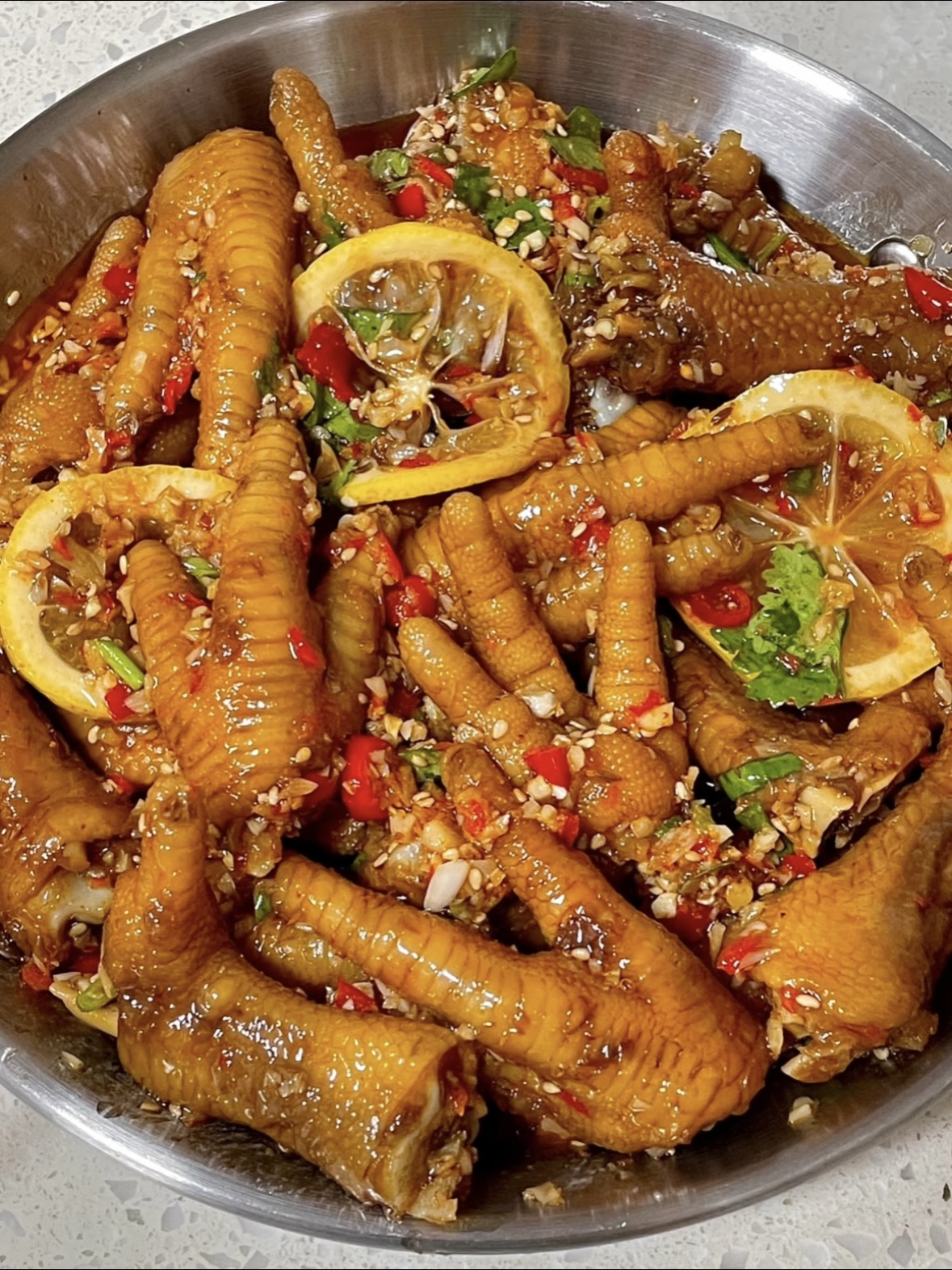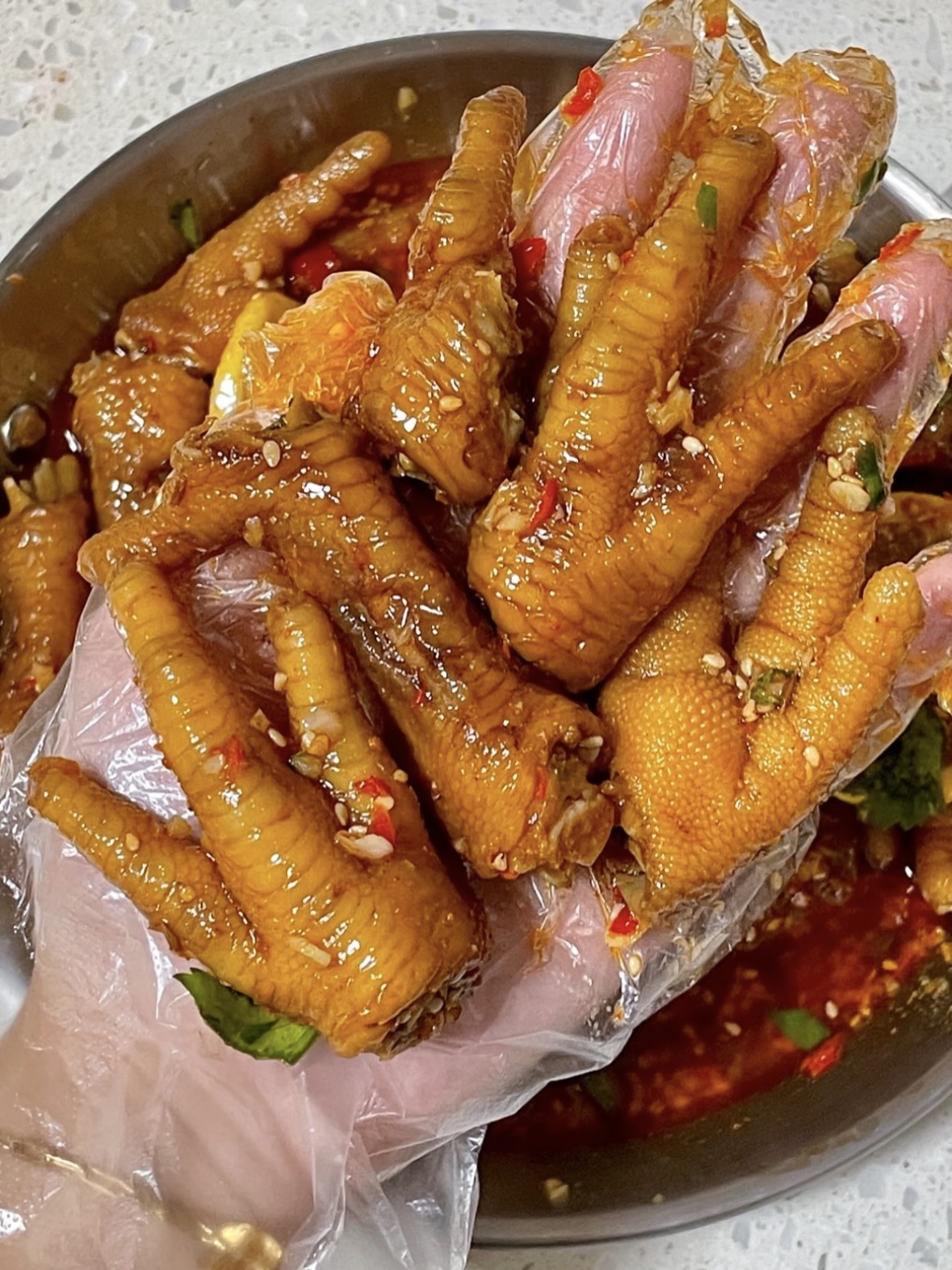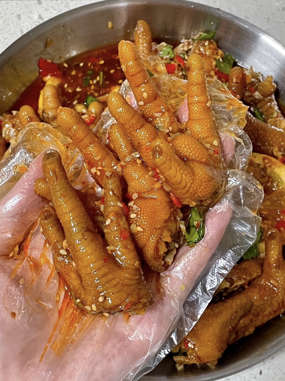 买鸡爪别偷懒,挑肉乎乎的大个儿,让老板帮你剪掉指甲,回家省得自己“咔咔”剪半天,手酸到怀疑人生。一斤刚好一盘,人多就翻倍,反正做法简单到离谱。