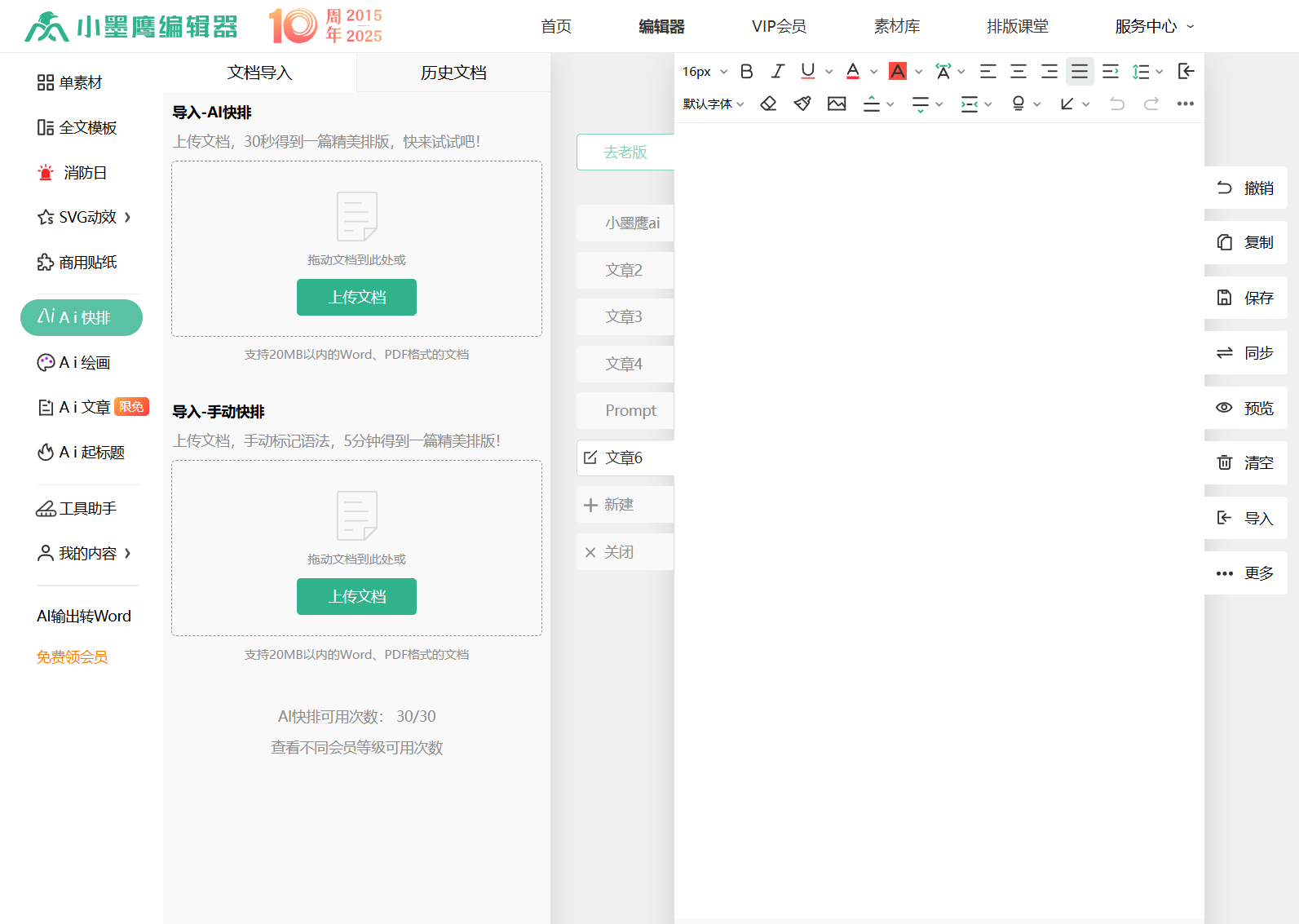 1、 小墨鹰编辑器:AI排版界的"钢铁侠"