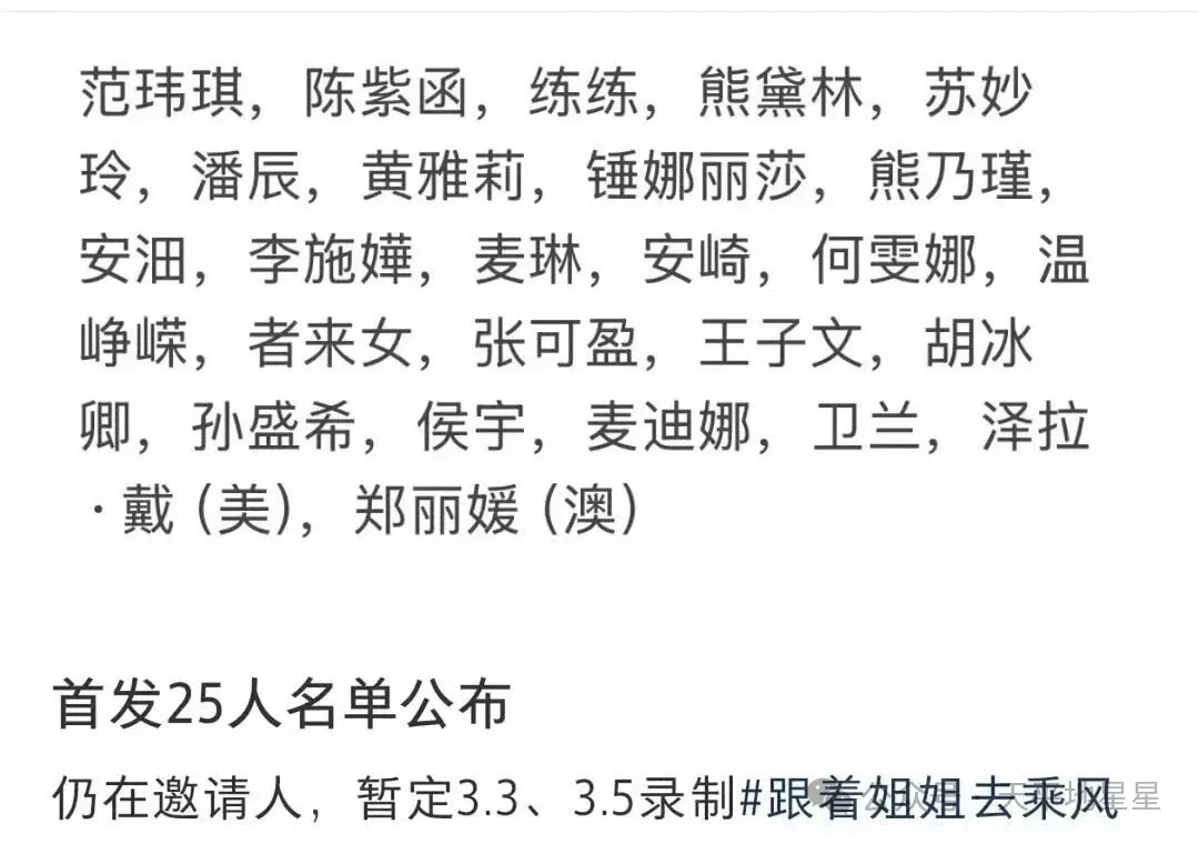 争议之外,也有几位嘉宾的网传加盟让人眼前一亮:陈紫函作为陪伴无数人成长的 “童年女神”,出道多年零黑料,低调敬业的形象圈粉无数,网友直呼 “终于等到她!姐姐的颜值和实力都在线,必须追”;