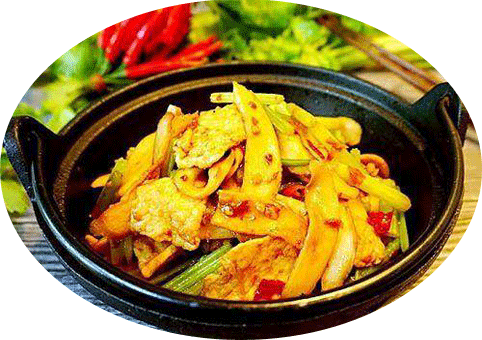 主料:杏鲍菇250克,猪肉70克,香芹100克