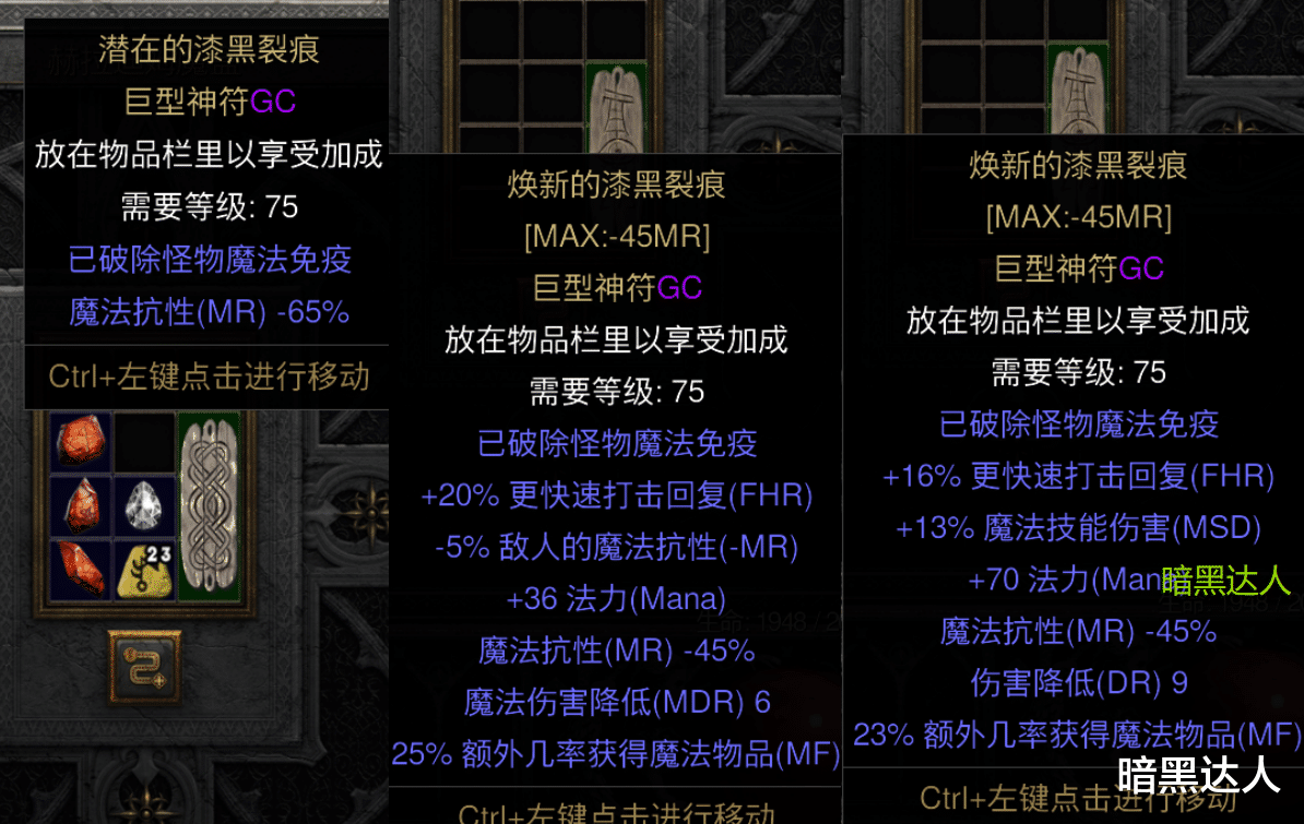 潜在的漆黑裂痕+完美钻石+23号(马尔Mal)+A3南方世界之石碎片+A4深层世界之石碎片+A5北方世界之石碎片=焕新的漆黑裂痕