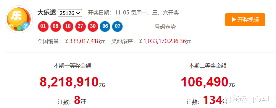 25126 期大乐透开奖落幕,前区 01、08、18、27、30 搭配后区 06、07,10.33 亿奖池开出 8 注头奖,每注 821 万余元。结合 109-126 期 18 期数据,从专业维度拆解走势,为下期选号提供概率参考(注:彩票开奖随机,以下仅为数据统计)。