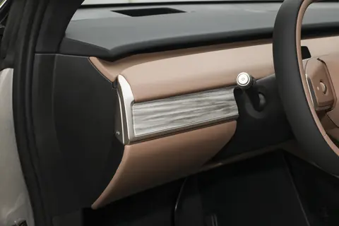 两侧LED灯组造型规整,集成了远近光、日行灯和转向辅助灯。后者在夜间过弯或进入窄道时会自动补光,有效减少视觉盲区。侧面采用无框车门设计,配合隐藏式门把手,不仅提升了整体感,也有助于将风阻系数控制在0.229 Cd,在同级别SUV中表现不俗。