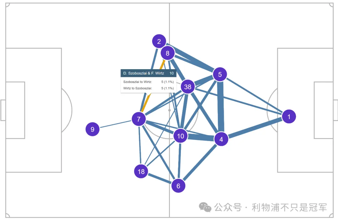 OPTA的数据表明,本场维尔茨和索博斯洛伊之间共完成10次成功传球,相互各5次,显示了两人之间良好的呼应关系。