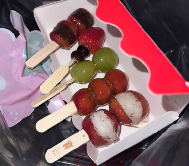 其次,它完美承接了“入冬四件套”的社交属性。从前是烤红薯、糖炒栗子、奶茶、糖葫芦,现在年轻人嫌“四件套”太普通,把糖葫芦升级成“花束版”,还发明了#草莓糖葫芦仪式感#的话题。