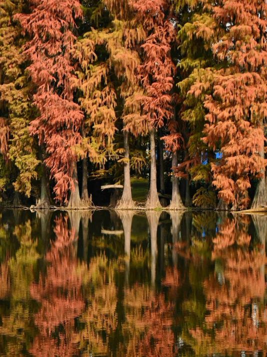 午后深入大九湖湿地,秋色多了水的参与。枯黄莎草在水面圈出金色涟漪,睡莲残叶与倒映的彩林构成抽象油画。乘坐小火车穿行九个湖泊,每转过弯道都有全新配色:孔雀蓝湖水配鹅黄草甸,墨绿云杉林镶着赤杨橙红滚边。摄影师架起长焦,等待白鹭飞过最佳构图点。
