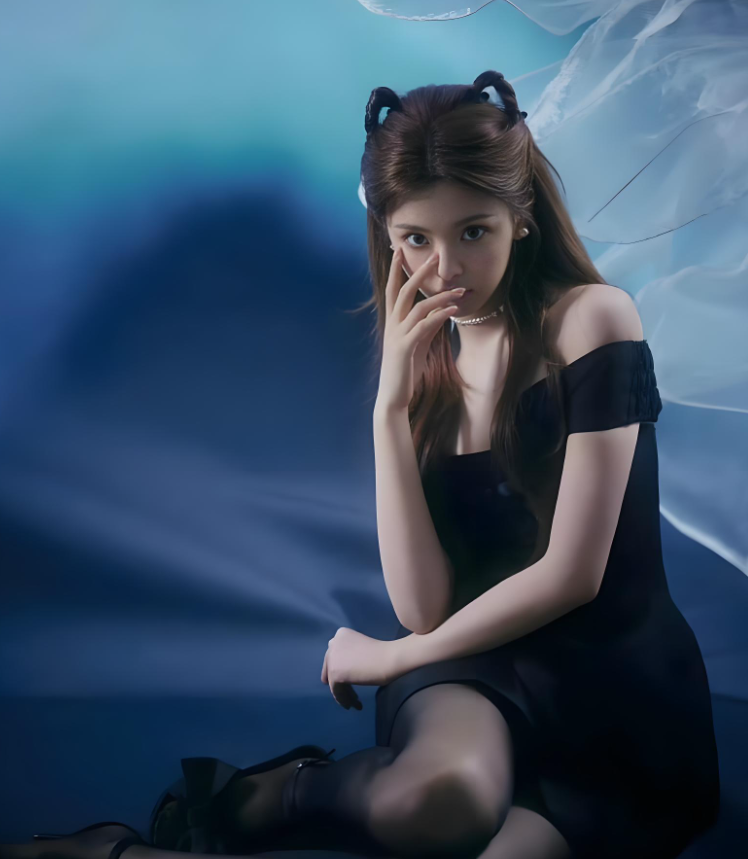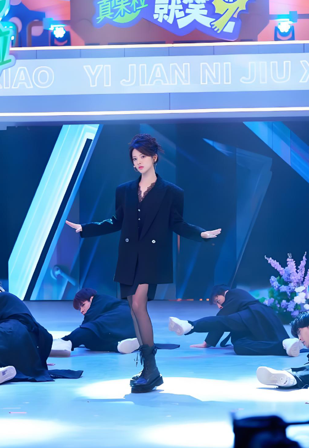 灵狐主题的概念图更有意思,黑色中长裙配着融入狐纹元素的黑丝,不对称黑纱拖尾飘着,腿部线条在黑色质地衬托下,直挺挺地顺着高跟鞋延伸,神秘又不失优雅。可镜头外的她,在综艺里是能扛农活、敢说真话的性子,在向日葵田里剥瓜子的模样,和灵狐造型的神秘气质判若两人。这种反差像冰与火的碰撞,让黑丝不再是单一的性感符号,成了她多元形象的载体。