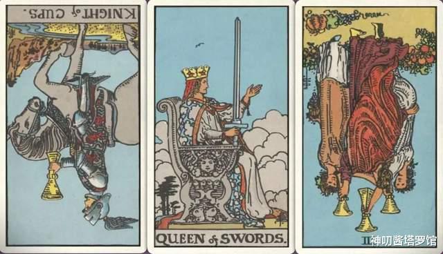 牌:圣杯骑士- 宝剑皇后+ 圣杯三-