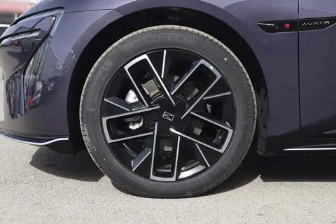 外观方面,第一次见到阿维塔06实车时,确实被它的整体造型所吸引。前脸比较具辨识度的无疑是那对F型的日间行车灯,点亮后极具科技感,在车流中能被一眼认出,这种原创性的设计拒绝了平庸的“大众脸”。车身侧面线条流畅修长,采用了时下流行的悬浮式车顶设计。值得一提的是,黑色的车顶不仅在视觉上有效地压低了车辆的重心,让整车显得更为低趴和运动,同时也为保证车内头部空间提供了实际的帮助,是美学与功能性结合得不错的一个例子。无框车门和隐藏式门把手的加入,进一步强化了其未来感与高级感,这些都是能直接触动年轻消费者审美神经的设计元素,无论开在哪里能够轻松吸引路人的目光。