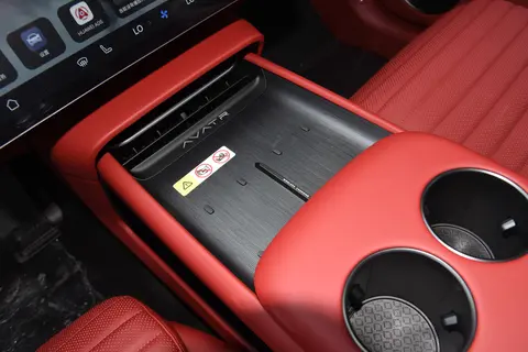 内饰上,打开无框设计的车门进入车内,一种注重科技感和豪华感的氛围营造得比较到位。采用了大量软性材质进行包覆,触手可及的地方手感都挺不错,细节处的缝线处理也显得比较精致,最吸引眼球的无疑是前方那块35.4英寸的全液晶仪表盘,尺寸相当可观,显示的信息非常丰富,UI界面的设计也挺清晰直观,驾驶者读取各种行车数据时比较方便。中控台则配备了一块15.6英寸的悬浮式屏幕,内置了基于HarmonyOS开发的车载智能系统,系统的流畅度和反应速度都表现均衡,支持多种主流的多媒体和互联功能。真皮材质的方向盘握感饱满,支持电动调节以及加热功能,这在不同的气候条件下都能提供更好的驾驶舒适性。换挡机构采用了电子怀挡的设计,操作起来比较顺手,也为中央通道区域节省出了更多的储物空间。此外,英国之宝 25 扬声器音响是我钟爱的配置,7.1.4 全景声场太震撼了,古典乐、嘻哈乐都能被狠狠拿捏,上下班高峰时,打开音响放首喜欢的歌,瞬间觉得堵车都成了享受。