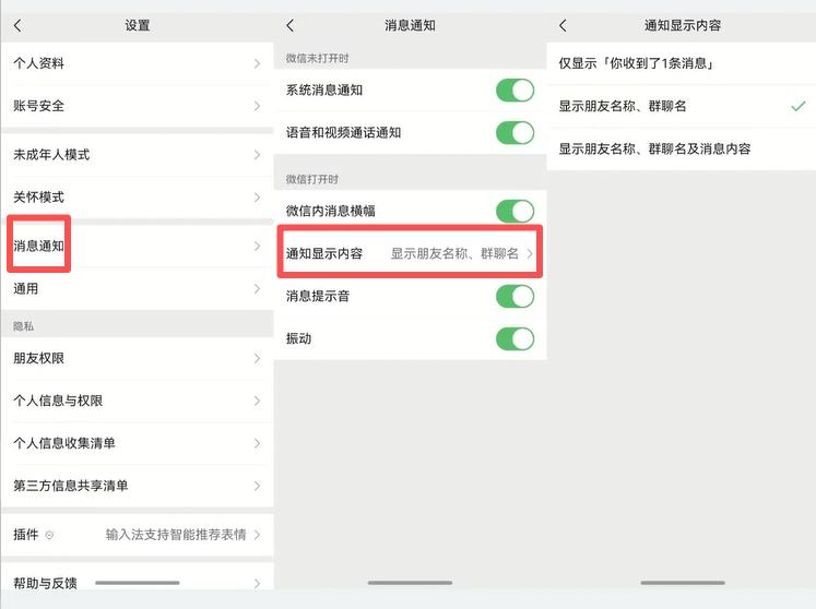 全家围坐看春晚,手机放在桌上突然亮屏,弹出一条肉麻情话或者私密吐槽,被长辈看到简直是大型“社死”现场。赶紧去微信里的“我-设置-消息通知-通知显示内容”里调一下。把它改成“显示朋友名称”或者干脆“仅显示你收到了1条消息”,就能告别这样的尴尬。大家也可以把系统设置-通知和状态栏-横幅通知改为“仅在机主注视时显示通知内容”,更好地保护隐私。