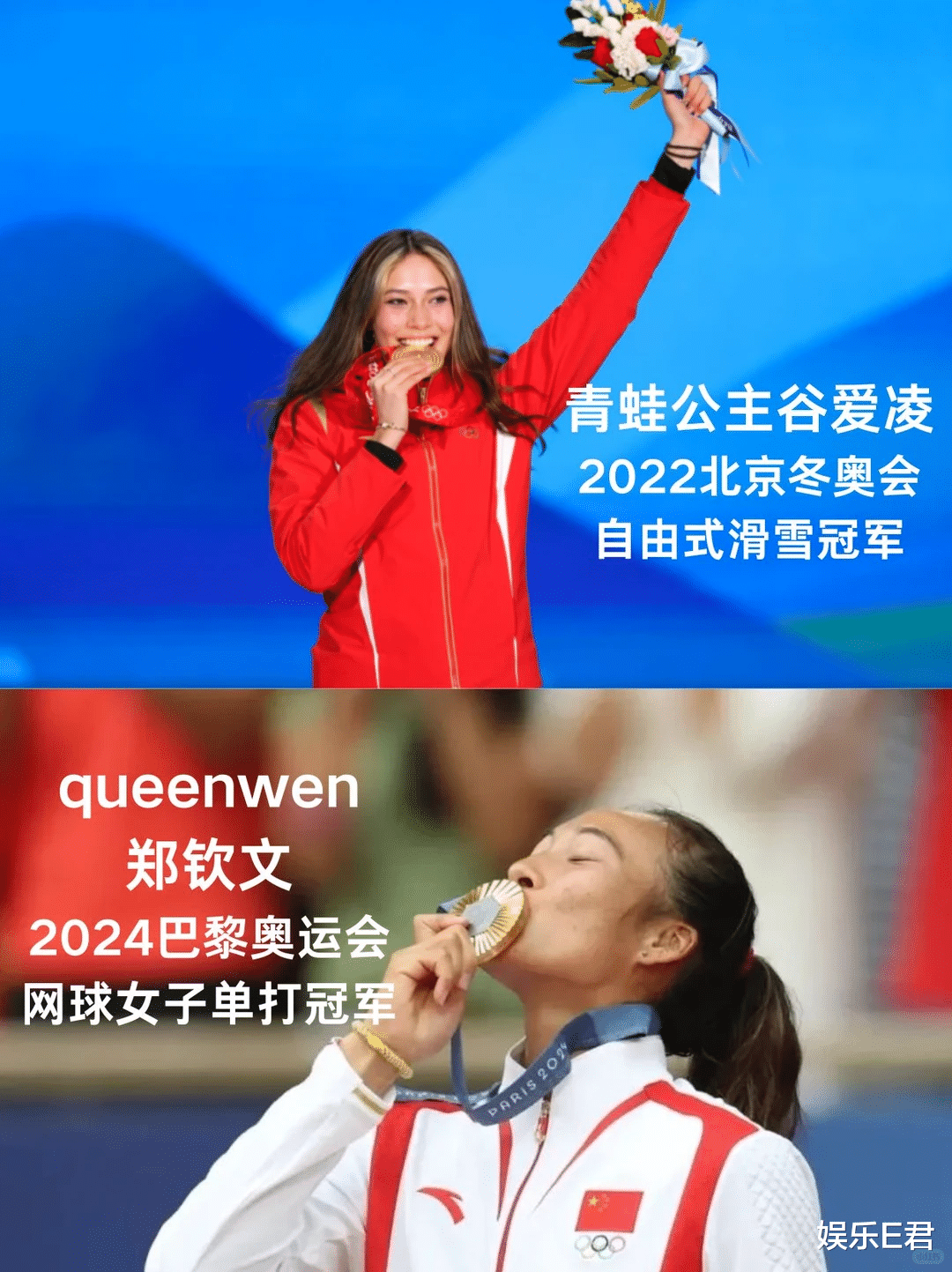 谷爱玲的成功源于北京冬奥的两金一银,郑钦文的声名大噪,则归功于2024年巴黎奥运会夺金以及2024年澳网亚军、2024利雅得年度总决赛亚军。郑钦文的后来居上,让谷爱玲也十分关注,巴黎奥运会谷爱玲还亲自下场观看了郑钦文比赛。