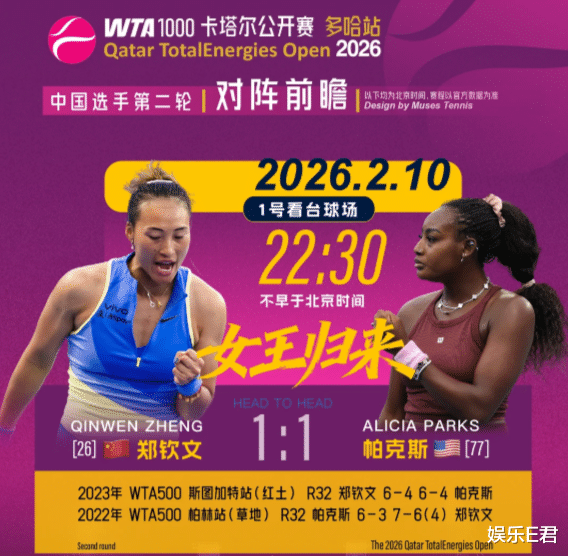 肯宁现世界排名第28位,2026赛季状态低迷(1胜4负,单打4连败)。双方唯一交手是2024年东京站决赛,郑钦文以7-6(5)/6-3获胜夺冠。郑钦文这次延续了对肯宁的胜利,接下来将对阵资格赛选手帕克斯。