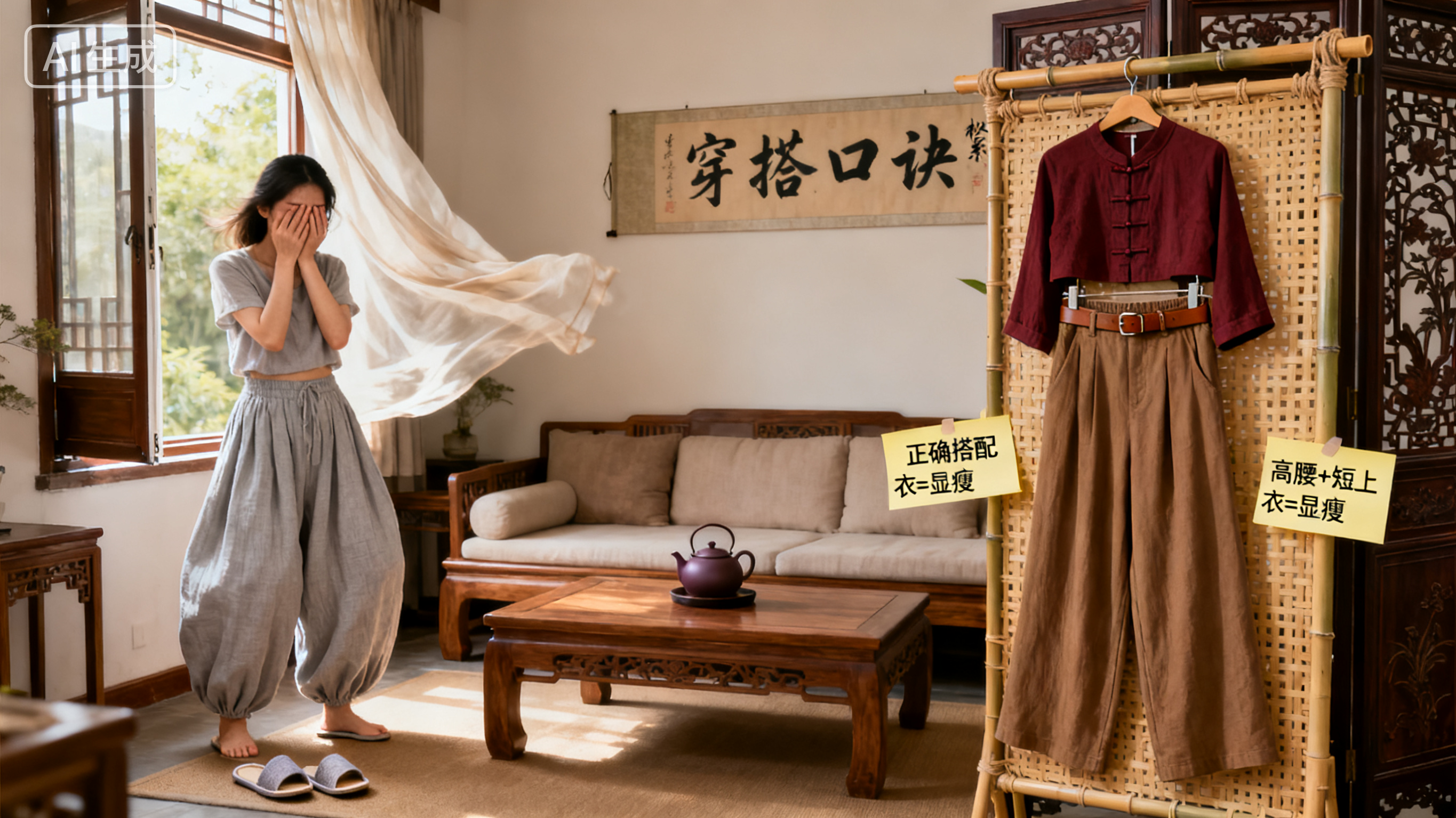 我上周翻出压箱底三年的中式棉麻小脚裤,就是那种腰间带暗纹盘扣、裤脚微收的款式,穿上身的瞬间直接惊艳自己!