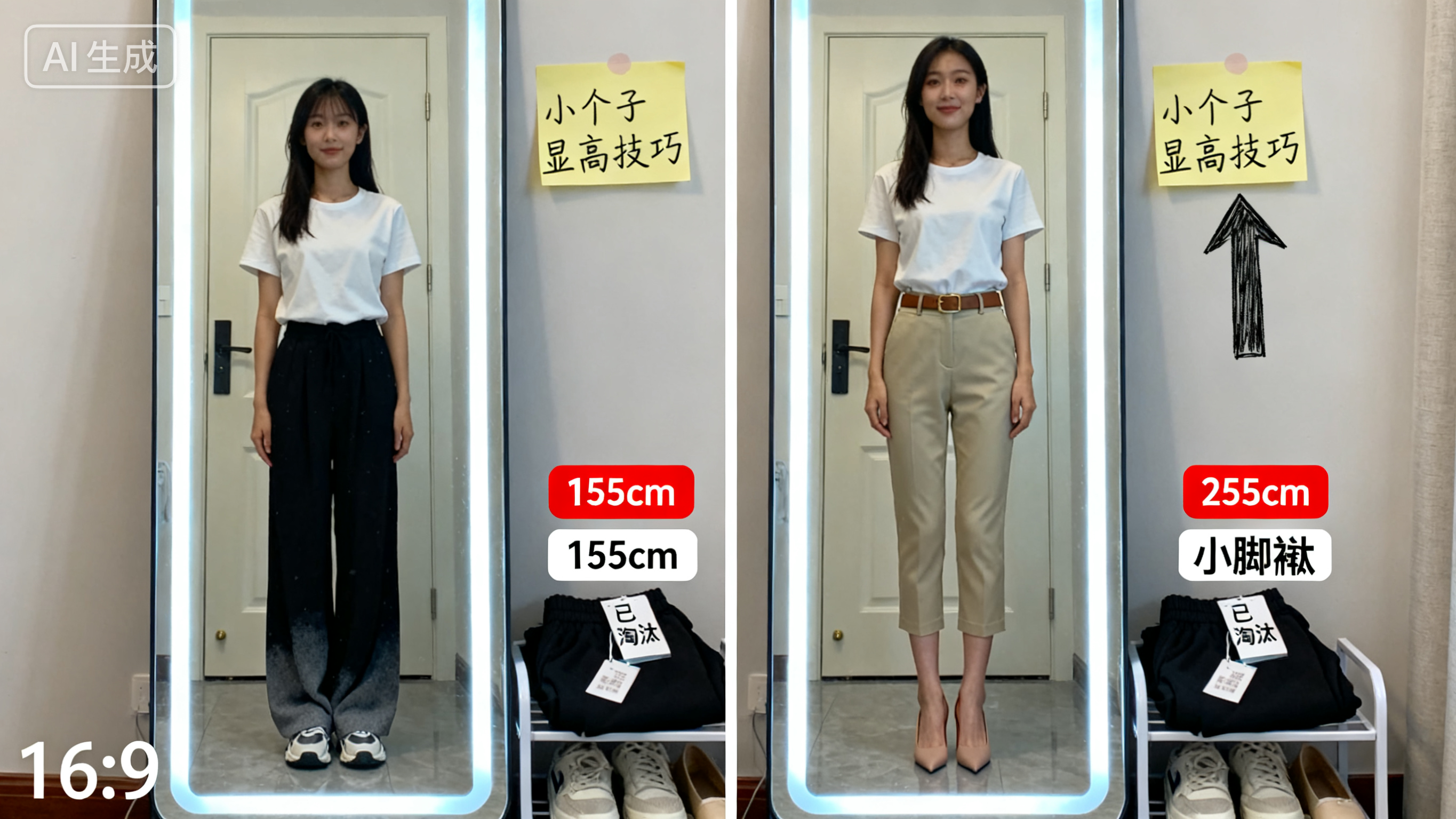 我闺蜜身高 155,以前总爱穿拖地裤显矮,听我建议换成七分小脚裤 + 细高跟,直接逆袭成 “长腿精”,气质都不一样了!