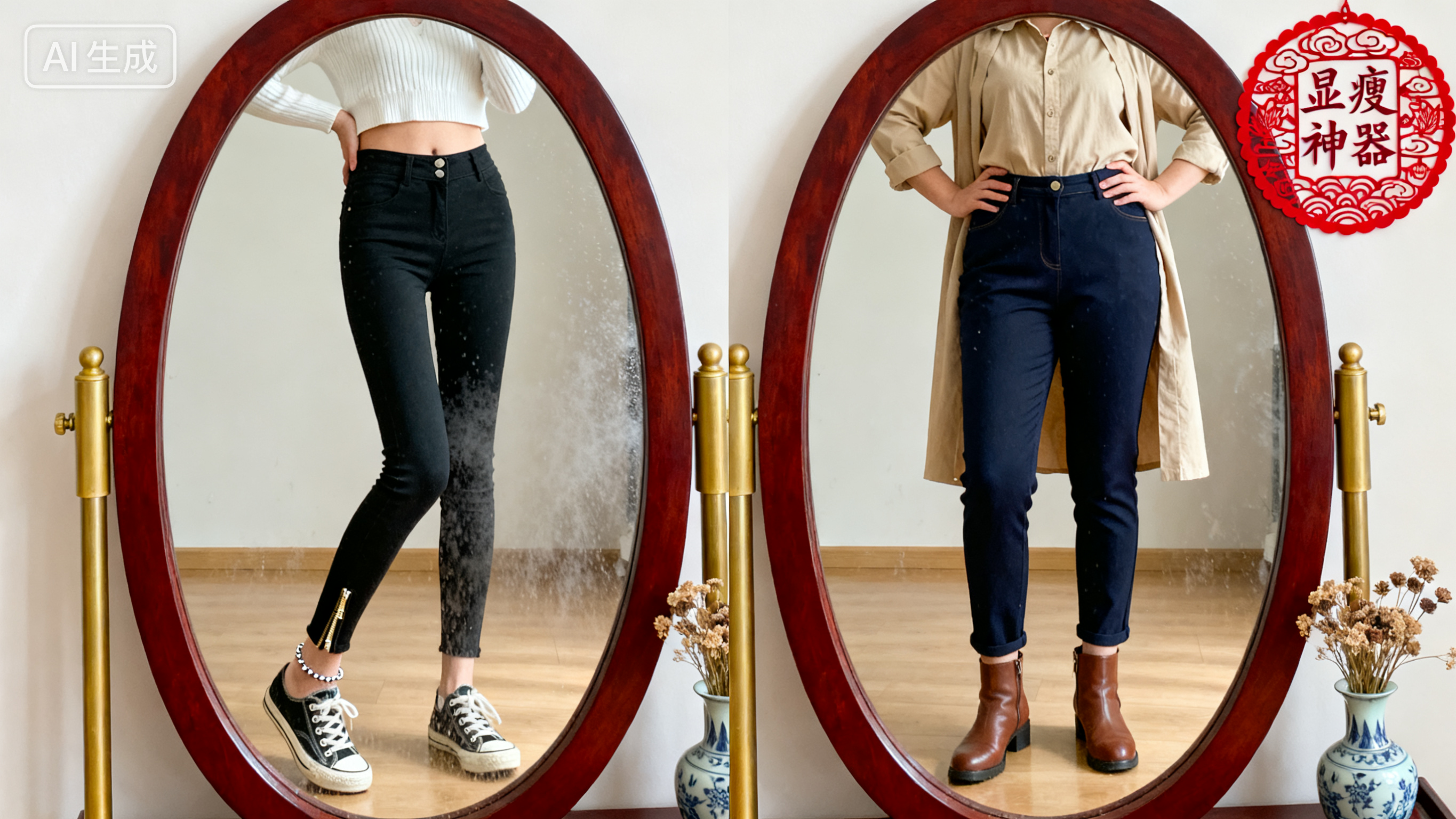 以前跟风追阔腿裤、拖地裤、各种奇形怪状的裤型,衣柜堆得满满当当,结果穿一次就压箱底!要么显邋遢像麻袋,要么显臃肿像球,折腾来折腾去,最后发现 —— 还是小脚裤最香!