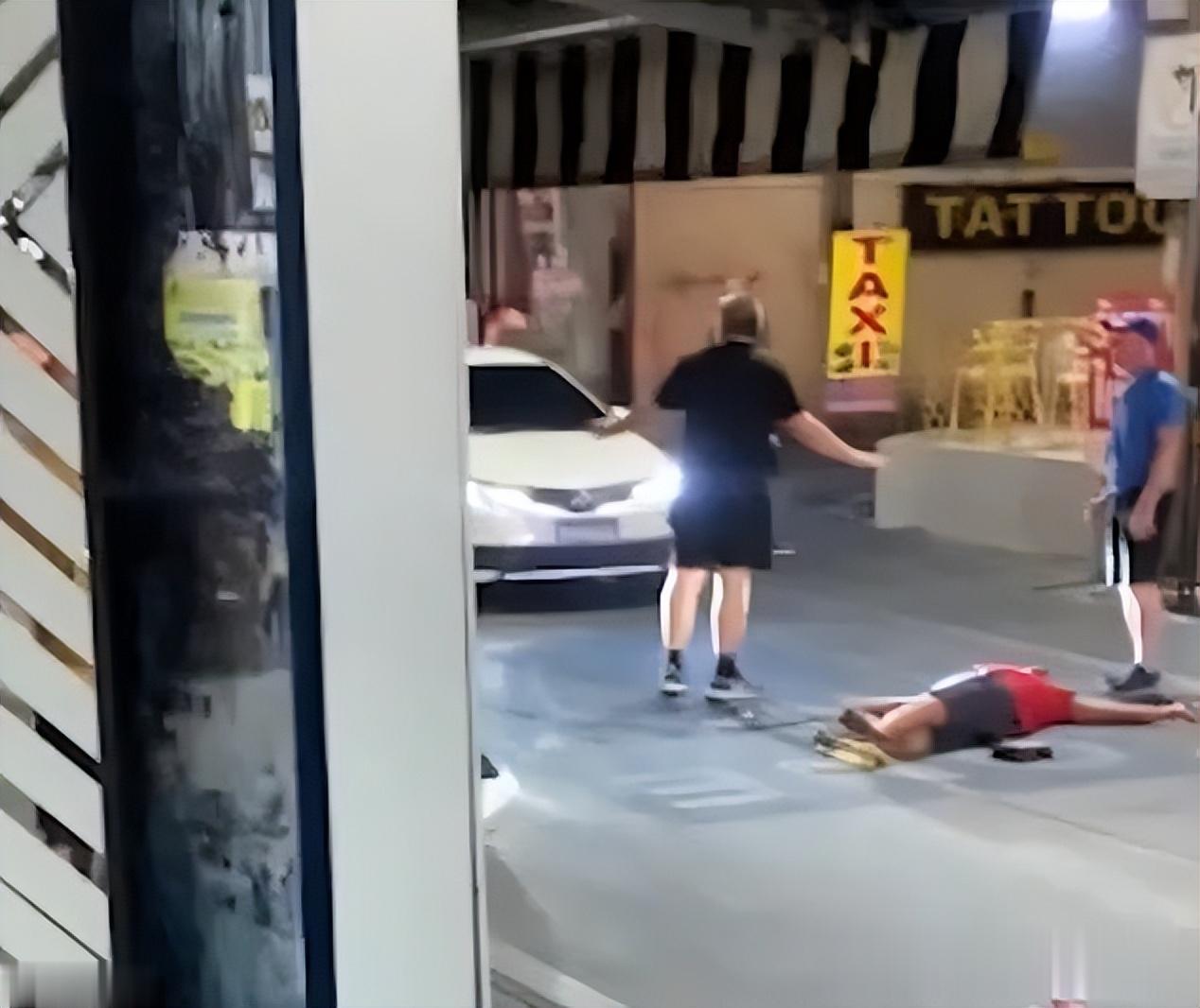 这场冲突迅速从酒吧蔓延到街头,两名主犯对一名穿红色上衣的美国男子拳打脚踢,甚至一脚将其踢至昏迷,随后又将怒火发泄在一名澳大利亚男子身上。
