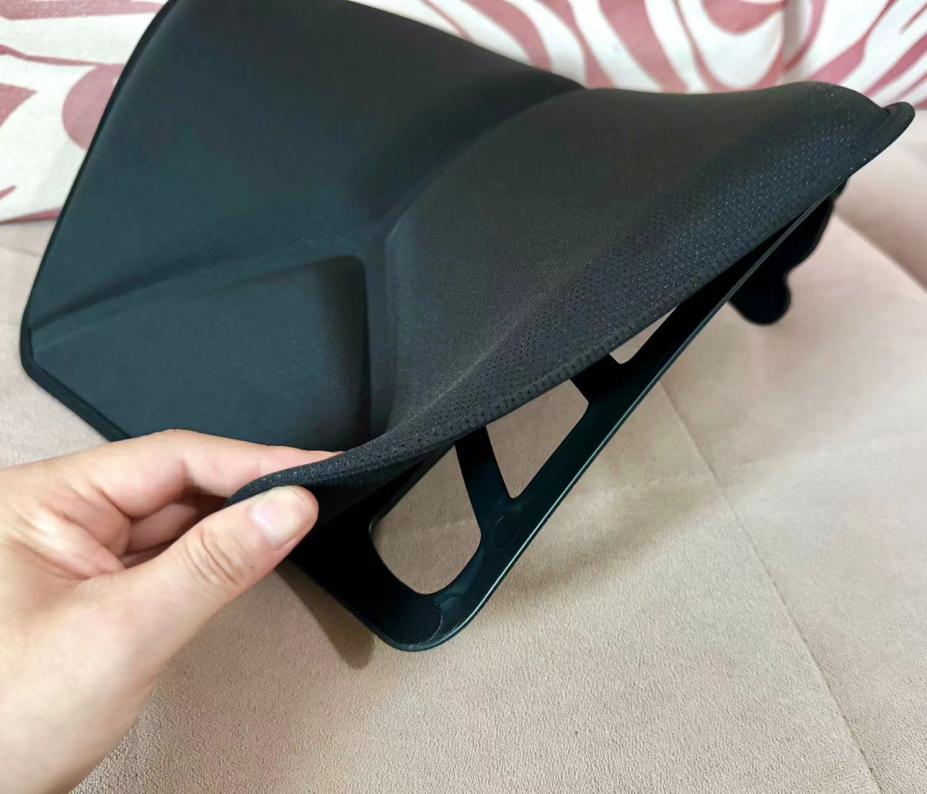 这款EAVY撑腰靠垫的靠板骨架采用双向曲面设计,纵向与横向都是曲面,对腰椎生理曲度的贴合度非常高。