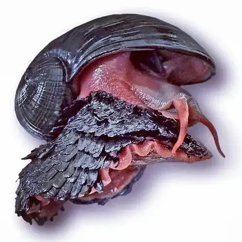 可火山蜗牛不一样,它的壳是实打实的硫化铁,具体来说就是黄铁矿、富硫铁矿,还有一种叫磁黄铁矿的东西(不用记化学式,知道是铁就行)。科学家们用专业仪器测过,确认过眼神,就是工业上能用的那种铁!咱们平时铺路、炼钢,甚至做工业催化剂,用的就是这东西,可在它身上,这就是皮肤、是骨头、是保命的本钱,能防深海里的天敌咬、能扛高温、还能挡有毒的东西。