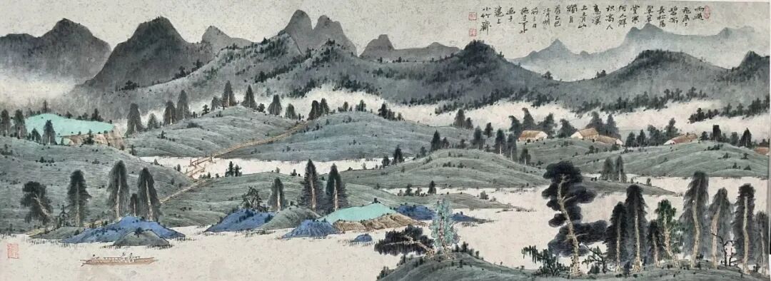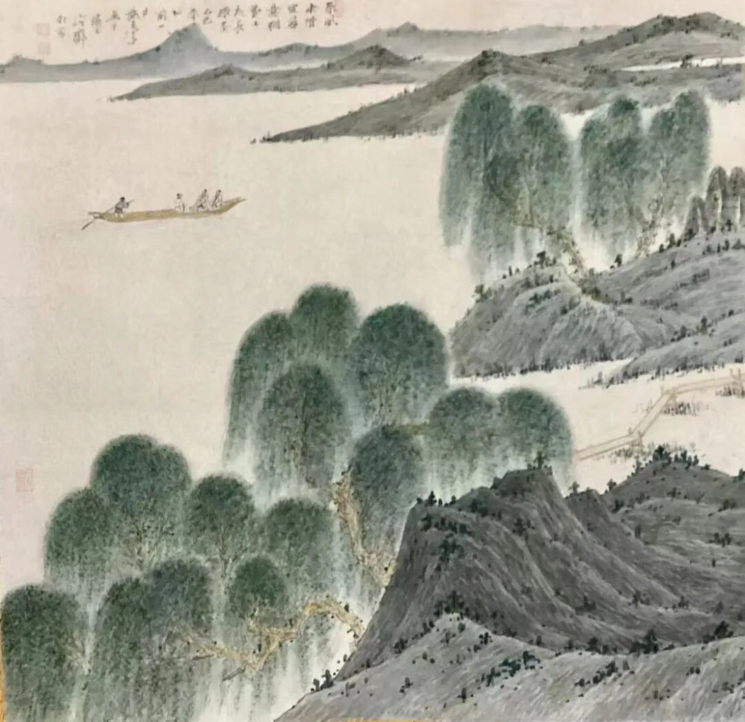 其山水,丘壑布局循古法而出新意,笔墨苍润相济,皴擦点染皆有法度。写江岸风帆,则江天寥廓、帆影悠然,水纹轻描、远山淡抹,尽现江景之澄远;绘溪山清居,则峰峦叠翠、泉石相映,亭榭隐于林泉,意趣归于静谧。不尚雄奇狂肆,独求清润悠远,咫尺尺幅间,藏千里丘壑,得宋人山水之意境,兼具今人之审美。
